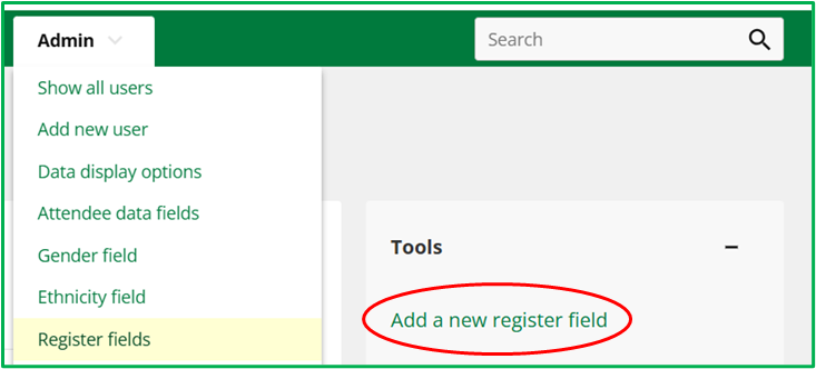 A new register field can then be added within the Tools section by clicking on Add a new register field.