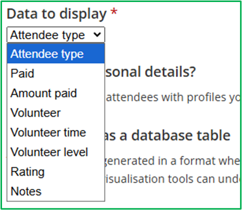 - Single-choice dropdown – A wide range of different use cases e.g. recording the engagement level of participants, specifying whether the individual participated in-person or online, adding the number of other individuals who attended with an attendee (e.g. carers).