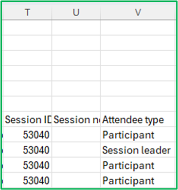 - Attendee Type - Contains a set list of different types of attendee to differentiate the capacity in which the attendee participated at the session, e.g. Participant, Session Leader, Teacher and a number of Support roles. Use of this field allows reporting to be separated by participant and other roles when reporting on the number of unique attendees and their attendances within the Statistics Report, and is an available filter in the People Report, Attendance Report and in the creation of Measured Indicators.