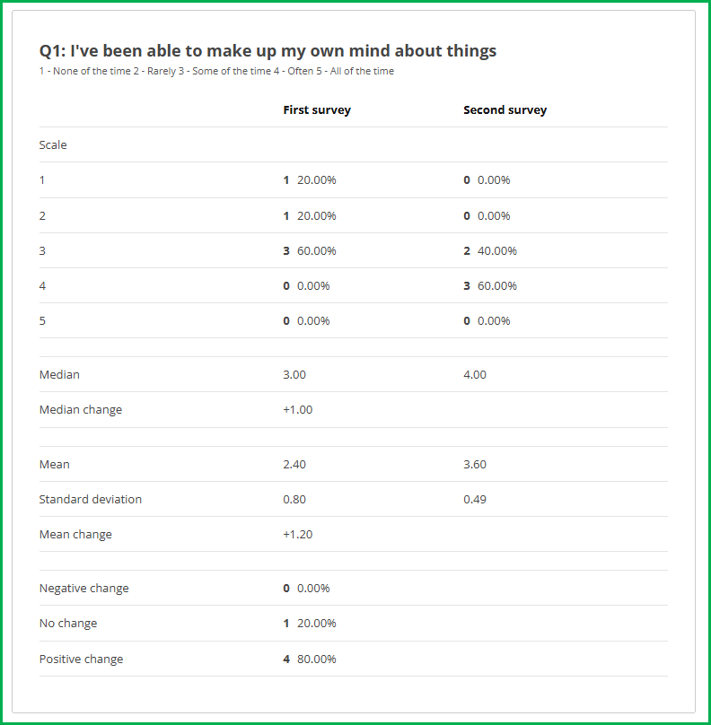 A FO would like all their delivery organisations taking part in their ‘Health and Wellbeing’ programme to conduct a short mental wellbeing survey at the beginning and end of the programme.